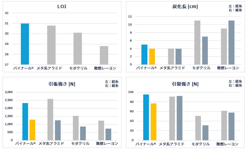 テキスタイルにおける他難燃繊維との比較